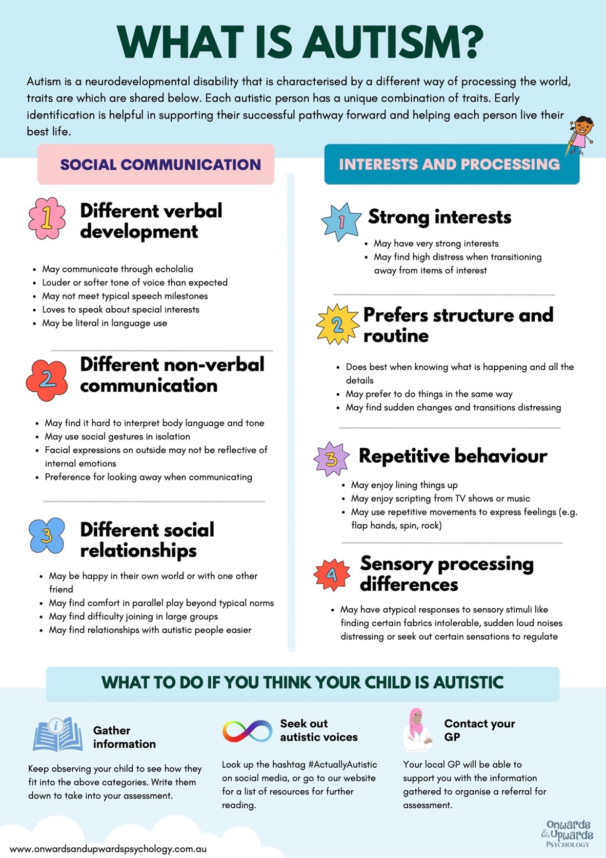April 2nd is recognised internationally as World Autism Awareness Day and April is often referred to as Autism Awareness month. I have included a helpful infographic created by the team at Onwards and Upwards Psychology below.