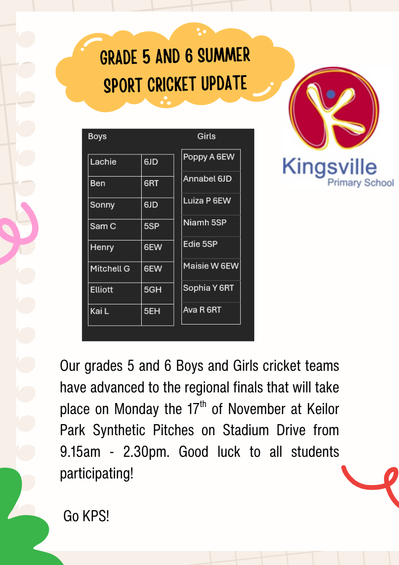We are well underway with class placements for 2026. If you know that your child/ren will be moving away from KPS for next year, can you please make the office aware ASAP on Kingsville.ps@education.vic.gov.au