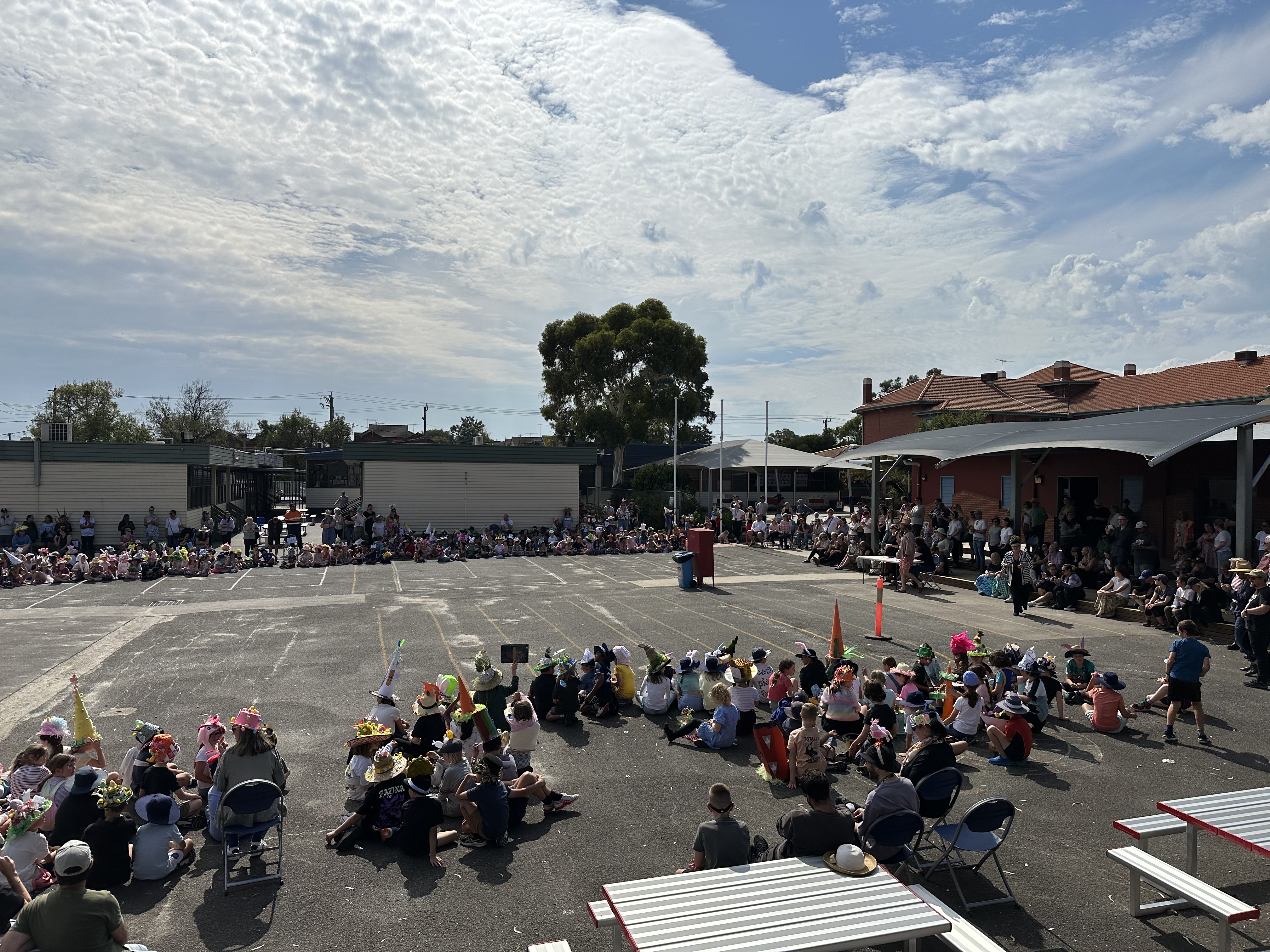 We finished the term today with our traditional Kingsville Easter Hat Parade. This is a delightful way to mark the end of term 1 and, it has developed over the last few years from a school assembly style event to a gala occasion and I always like to claim it is the “millinery event of the year”. We had fine weather and a large audience made up of parents, grandparents, family members and friends from near and far.