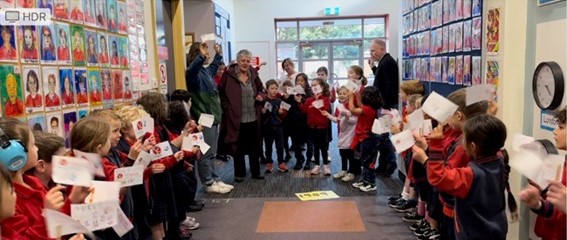 Last Friday afternoon, the staff hosted a ‘high tea’ for Ms. Ginnane, a delightful soiree to honour her service to education and Kingsville Primary School. On Wednesday morning, Ms. Ginnane visited all the children, embarking on a Grand Tour of the classes. She was celebrated with a guard of honour by the Foundation to Year 2 students and the sharing of cherished memories and significant events from her time at Kingsville. Each Year 3 to 6 class group also presented her with a small gift organised by the staff as a token of appreciation.