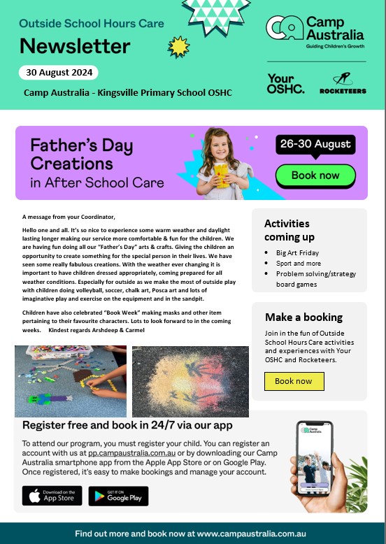At our school, we understand the diverse needs of our families and strive to provide a supportive environment for everyone. For parents and carers who require supervision for their children outside of regular school hours, we partner with Camp Australia, our trusted out-of-hours care provider.
